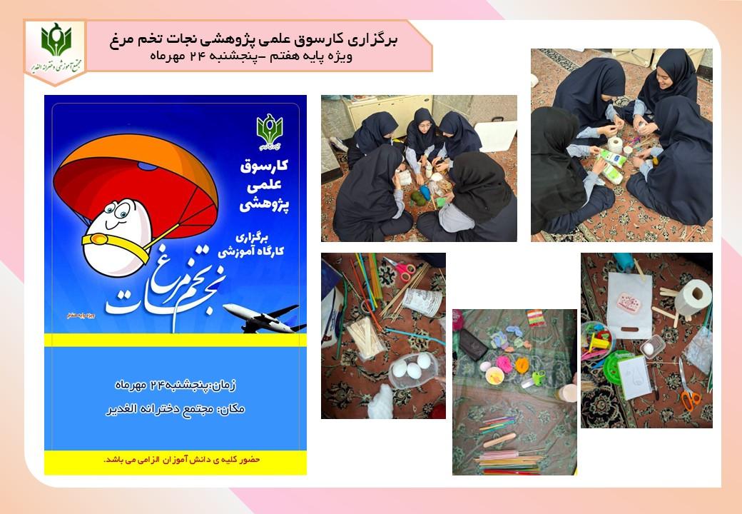 برگزاری کارسوق علمی پژوهشی نجات تخم مرغ ویژه پایه هفتم -پنجشنبه 24 مهرماه