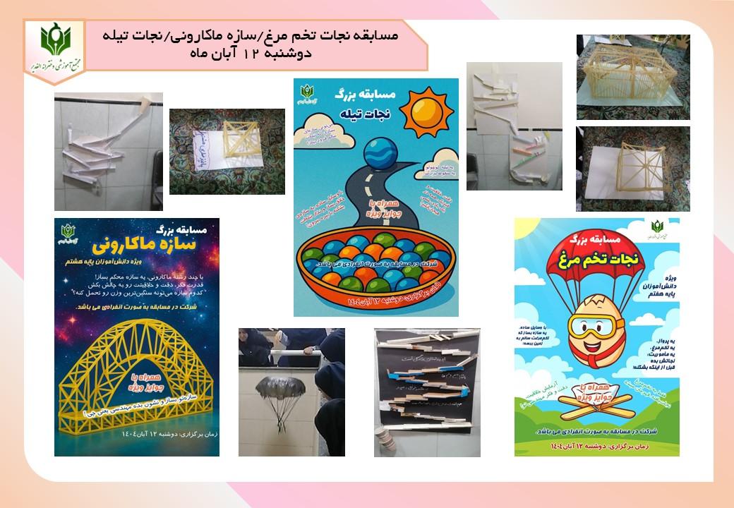 مسابقه نجات تخم مرغ/سازه ماکارونی/نجات تیله دوشنبه 12 آبان ماه