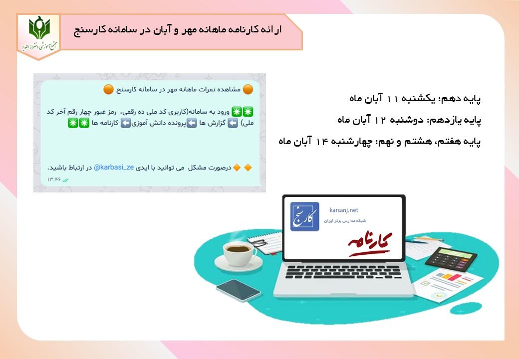 ارائه کارنامه ماهانه مهر و آبان در سامانه کارسنج