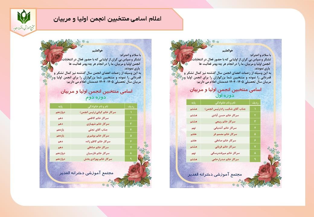 اعلام اسامی منتخبین انجمن اولیا و مربیان