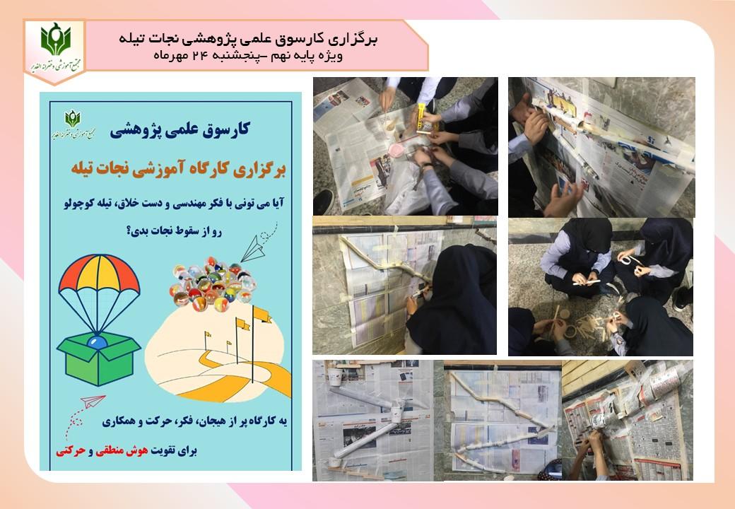 برگزاری کارسوق علمی پژوهشی نجات تیله ویژه پایه نهم -پنجشنبه 24 مهرماه