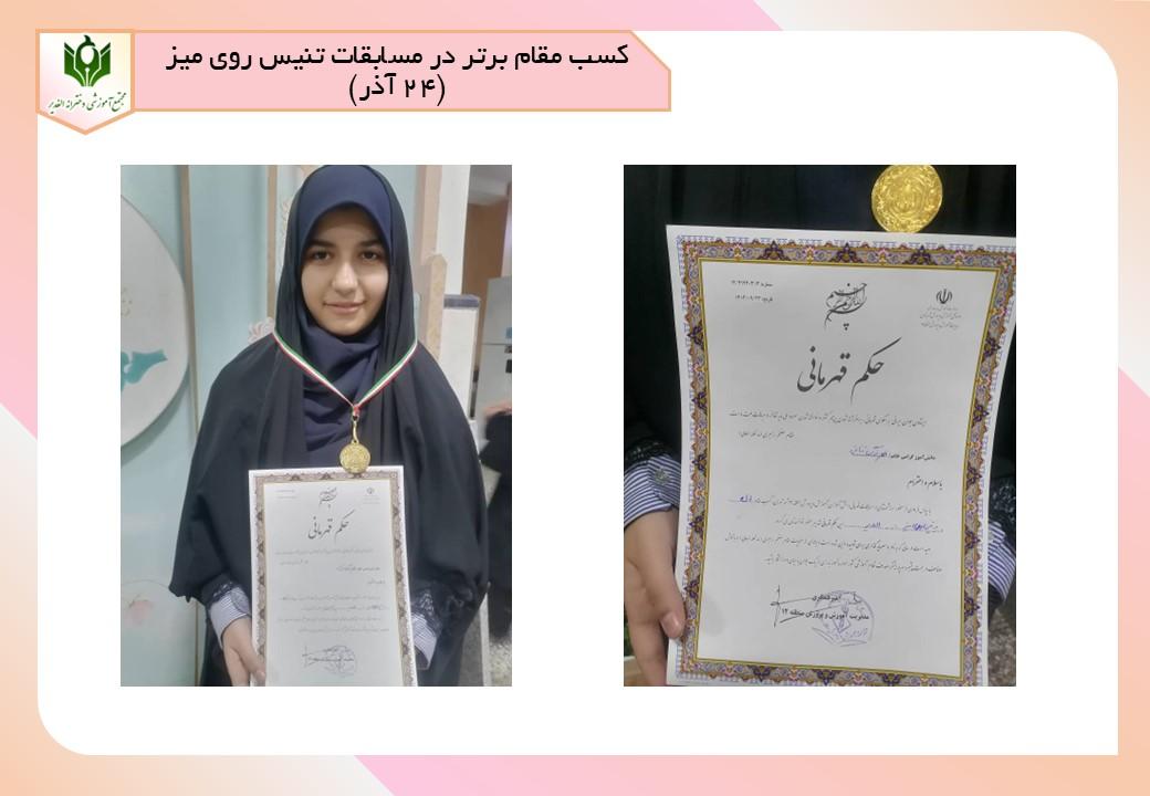 کسب مقام برتر در مسابقات تنیس روی میز (24 آذر)